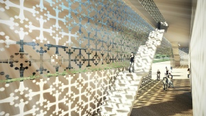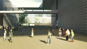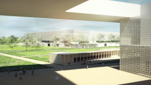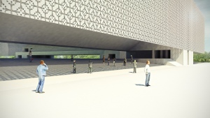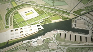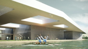 Il parco dello sport si articola su una serie di sequenze, idee programma da sviluppare in parallelo o in tempi diversi, che conferiscono al masterplan generale, una flessibilità realizzativa e di usi; un impiego di un reticolo ortogonale ispirato all’orditura geometrica delle campiture agricole ed il raddoppio del canale dei navicelli determinano la genesi dell’analitica che, nei punti di intersezione, dà luogo alle principali emergenze volumetriche. I tracciati regolatori identificano così le varie aree del parco: lo stadio che assume il ruolo di struttura polivalente nell’uso, gli impianti per gli sport all’aperto su una superficie di 80.000 mq., la grande piastra coperta di 48.000 mq. con gli impianti polifunzionali per gli sport al coperto, i giardini e i sistemi d’acqua. Intorno allo stadio si sviluppano i campi per gli sport all’aperto. Se da un lato si hanno i lunghi filari di alberi e i regolari parterre tematici che divengono quasi un nobile basamento per il nuovo stadio, dall’altra si ha il bacino d’acqua e un verde, più volumetrico, a bande che si attestano sul canale dei Navicelli, un mouvement en peigne, secondo i moduli analoghi a quelli dell’altra parte, che culmina là dove si erge il grande edificio a piastra, meraviglia, invenzione, che conferisce al luogo un forte senso di identità. Trovano qui sede gli sport indoor, tre macro strutture al disotto della piastra, che si alternano a spazi piazza luoghi delle relazioni, costituite dalla piscina di 50.000 mc., la palestra di 84.000 e il palazzetto dello sport di 67.000 mc.